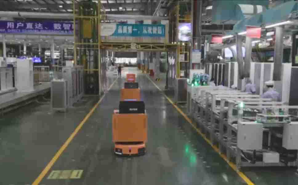 为车载冰箱物流配送打造的智能解决方案,,包含产中物流通过潜伏举升AMR搬运至线边,,,产后成品物流智能仓储,,,流程包含产中物流智能齐套入库,,线边安灯叫料AMR智能配送至线边,,成品入库、、、、出库,,通过无人堆高车机器人,,,,智能仓储管理替代人工作业管理,,,实现更高存储、、、、更高效率、、更具柔性化的解决方案。。。